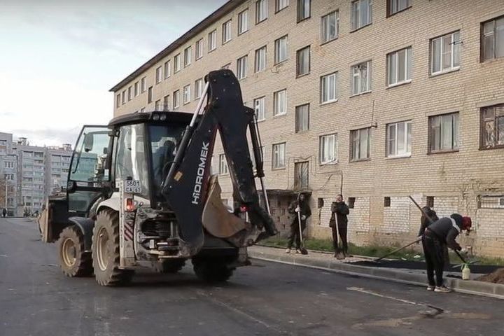 Первый слой уложен на всем протяжении. Установлен бордюрный камень, частично заасфальтирован тротуар. Второй слой планируется укладывать в выходные.