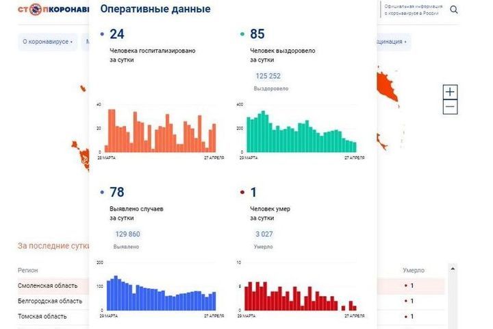 27 апреля в Смоленской области насчитывается 129 860 случаев заболевания коронавирусом с начала пандемии.