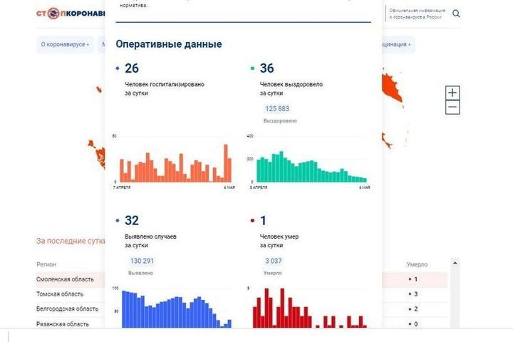 6 мая в Смоленской области насчитывается 130 291 случай заболевания коронавирусом с начала пандемии.