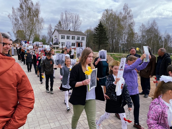 В Сафоновском районе День Победы – главный праздник в году. Здесь нет ни одной семьи, которую эта беда обошла стороной. Воевали деды и прадеды. Их фотографии сегодня в руках учеников Рыбковской школы составили свой Бессмертный полк.