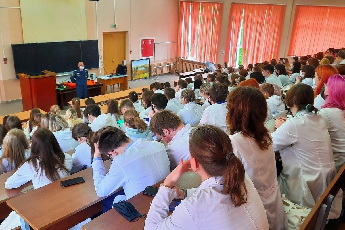 Профилактическую беседу с будущими медиками провел Игорь Самойленко, старший государственный инспектор по маломерным судам. Он рассказал студентам, как избежать происшествий на воде и что делать, если ты все-таки стал участником несчастного случая. Сотрудник чрезвычайного ведомства побеседовал и о безопасном купании в водоемах.