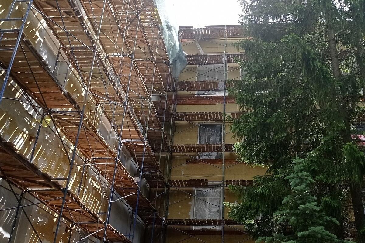 На данный момент подрядчик выполнил ремонтные работы кровли на 50%. На внутренней части учебного корпуса выставлены строительные леса и ведутся работы по утеплению фасада учебного корпуса утеплителем. Выложен второй ряд фасадной плитки на цоколе учебного корпуса.