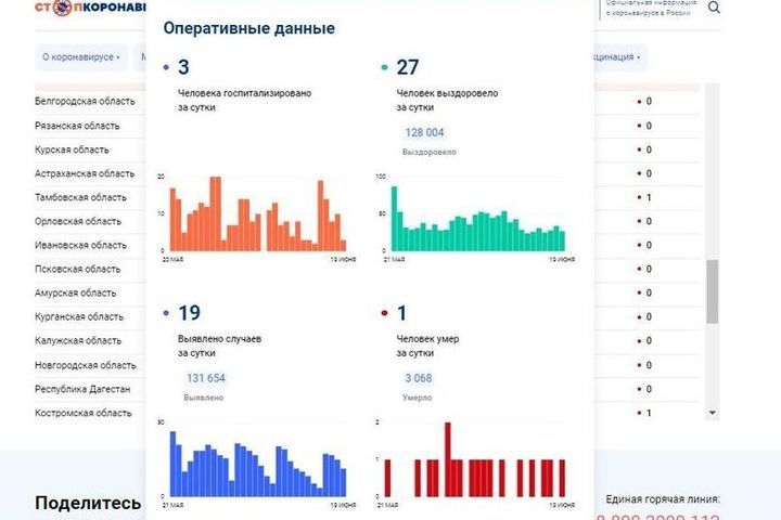 19 июня в Смоленской области насчитывается 131 654 случая заболевания коронавирусом с начала пандемии.