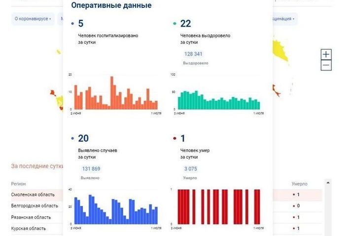 1 июля в Смоленской области насчитывается 131 869 случая заболевания коронавирусом с начала пандемии.