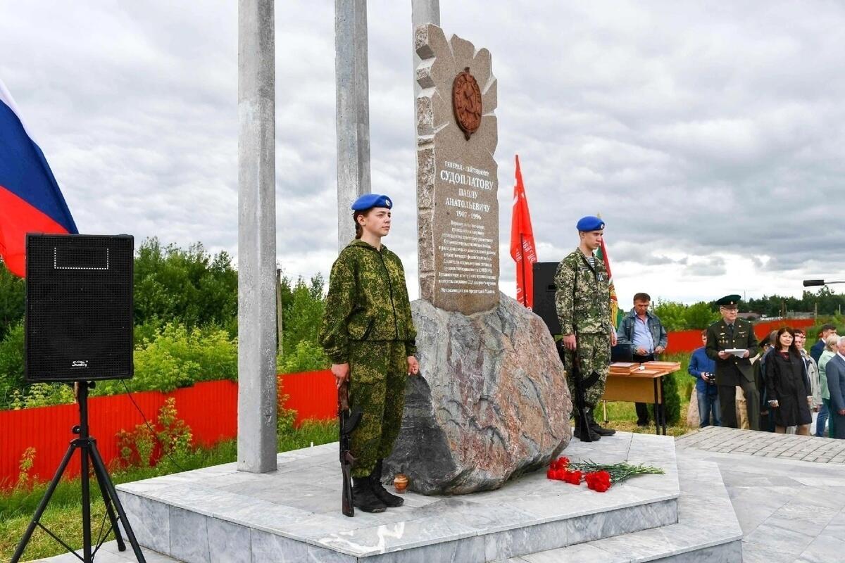 Павлу Судоплатову был отлит именной памятник, находящийся сейчас на Аллее партизанской славы. Память героя пришел почтить Виктор Молотков, секретарь местного отделения партии «Единая Россия» и Артем Малащенков, депутат областной думы, а также неравнодушные жители района.