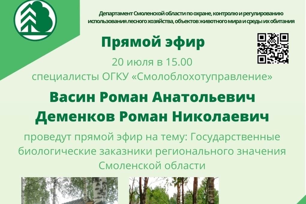 Посмотреть эфир можно в официальном паблике Департамента лесного хозяйства Смоленской области в социальной сети «Вконтакте». Там же можно задать вопросы выступающим.
