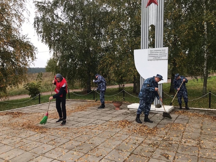 Сотрудники Управления по конвоированию УФСИН России по Смоленской области совместно с активистами Волонтерской Роты Боевого Братства Смоленска привели в порядок Мемориал и Братскую могилу 1000 советских военнопленных, замученных фашистскими захватчиками в период 1941-1943 гг., в поселке Пасово.