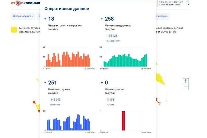 Число заболевших COVID-19 на Смоленщине за сутки составило 251. За сутки госпитализирован 18 человека. Напомним, накануне, 24 сентября было выявлен 305 фактов заболевания.