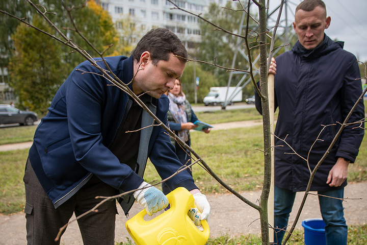 Смоленский «Зеленстрой» совместно с Промышленным райуправлением и местными жителями высадили здесь более 40 новых деревьев. Глава региона лично сажал деревья и пообщался с жителями.