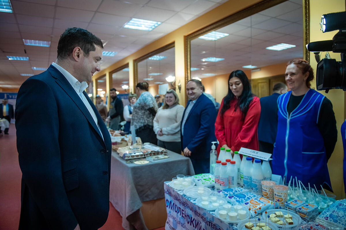 Глава региона также посетил выставочную экспозицию продукции смоленских аграриев, которая разместилась на территории «Губернского». По итогам посещения выставки Губернатор поручил профильному Департаменту проработать возможное расширение сельскохозяйственных ярмарок выходного дня в том или ином формате.