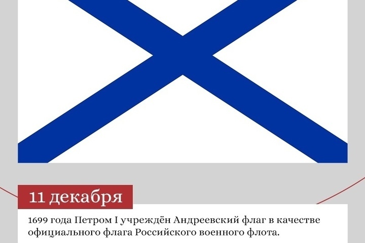 11 декабря 1699 года Петр первый учредил Андреевский флаг в качестве Российского Военно-морского флага.