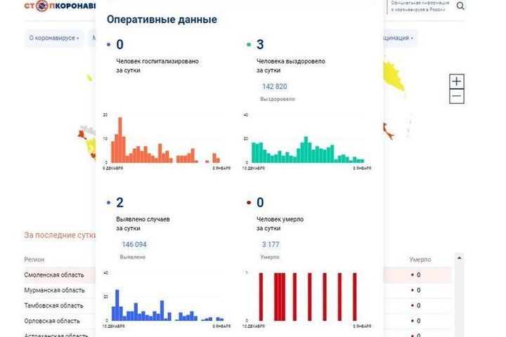 8 января в Смоленской области насчитывается 146 094 случая заболевания коронавирусом с начала пандемии.