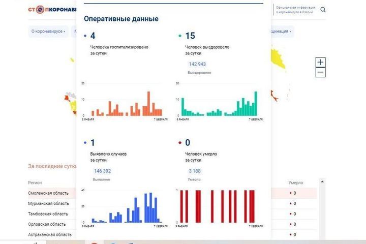 7 февраля в Смоленской области насчитывается 146 392 случая заболевания коронавирусом с начала пандемии.