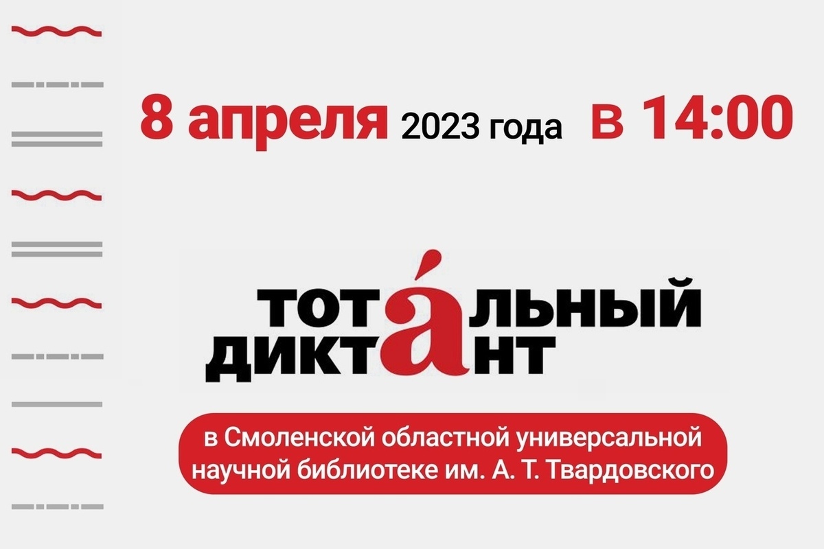 Завтра, 8 апреля, в 14:00 смоляне смогут проверить свои знания в русском языке. На базе Смоленской областной универсальной научной библиотеке им. А.Т. Твардовского состоится Тотальный диктант.