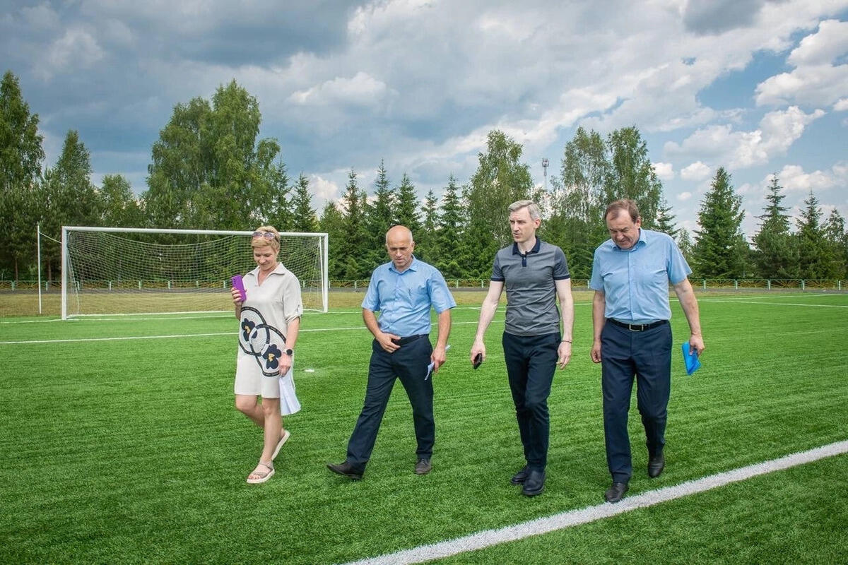 В ходе посещения Краснинского района была проверена реконструкция стадиона «Восток».