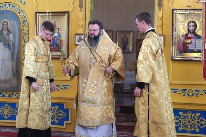 Сегодня митрополит Смоленский и Дорогобужский Исидор совершил Божественную литургию в храме Святого Духа в городе Духовщине.