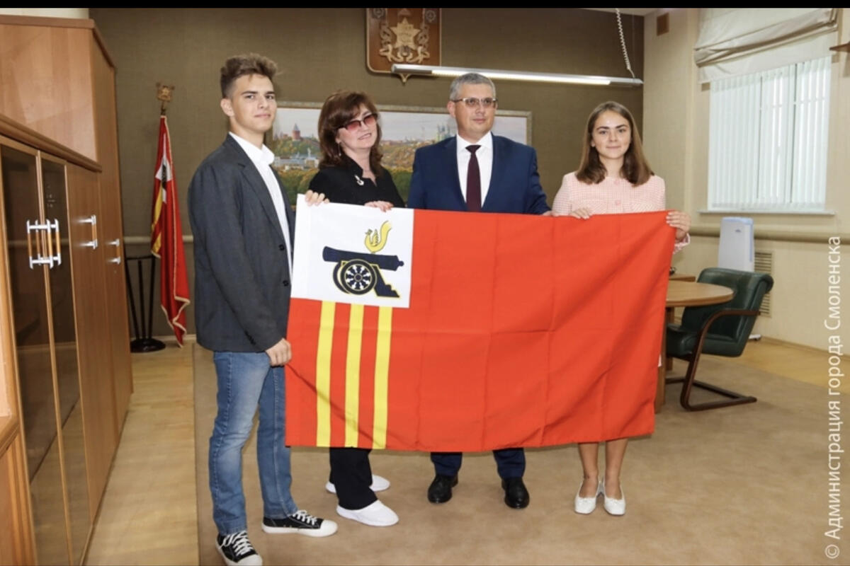 Ребята развернут флаг города-героя, который им вручит глава города Александр Новиков.