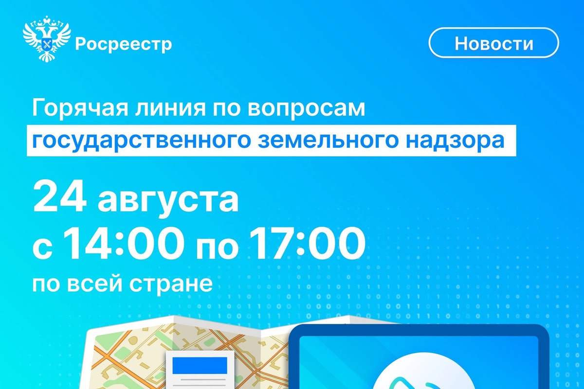 24 августа с 14:00 до 17:00 по всей стране Росреестр ответит на вопросы, связанные с государственным земельным надзором.