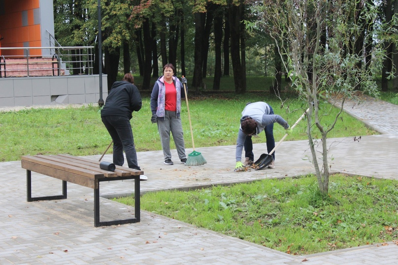 В центральном парке убрали листву, подмели дорожки. Навели порядок на детской площадке.