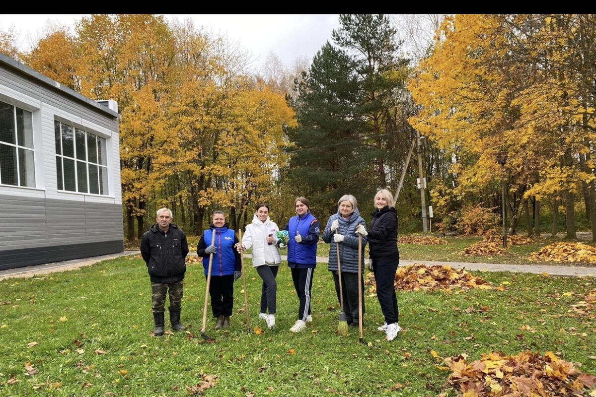 Молодогвардейцы очищали от опавшей листвы территорию возле Районного дома культуры в селе Пригорское,а также наводили порядок в деревне Санники Смоленского района.