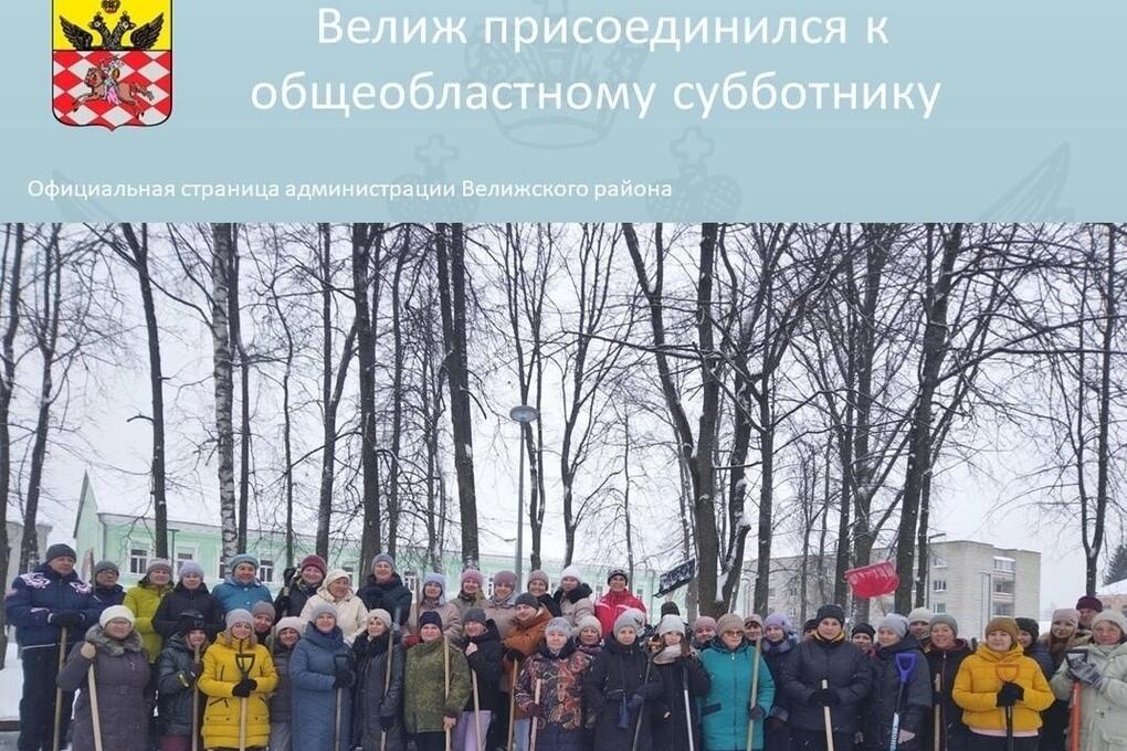 2 декабря, в рамках общеобластного субботника в Велиже с улиц города убрали тонны снега.