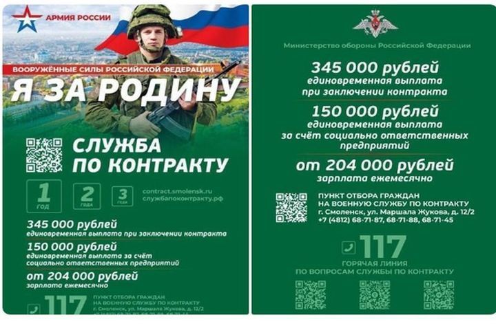 Поступающие на военную службу и заключающие контракт от 1 года получают единовременную выплату в размере от 345 тысяч рублей. Для родственников контрактников, добровольцев и мобилизованных смолян функционирует специальная платформа «Za Добро», внедрена социальная дисконтная карта «Zа Добро», с ними также работают социальные кураторы из Центра поддержки участников СВО и членов их семей (г. Смоленск, ул. Пригородная, 4, тел. 8 (4812) 22-98-00). В Смоленской области по поручению Президента России Владимира Путина также открыт региональный филиал Фонда «Защитники Отечества» (г. Смоленск, ул. Кловская, 13), специалисты которого занимаются поддержкой ветеранов СВО и членов их семей в части персонального сопровождения по всем возникающим вопросам.