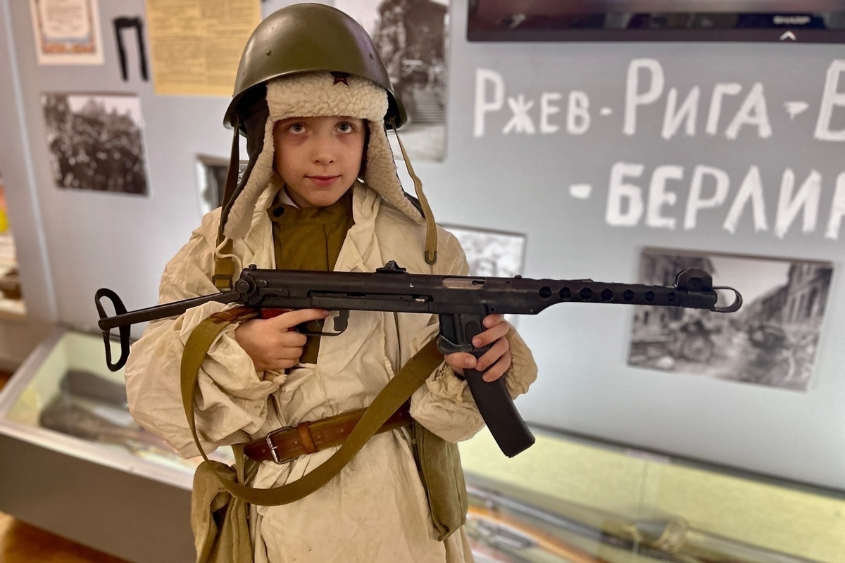 Ребята померили форму и обмундирование времен Великой Отечественной войны, а в завершении мероприятия им был продемонстрирован документальный фильм, посвященный прорыву блокады Ленинграда.