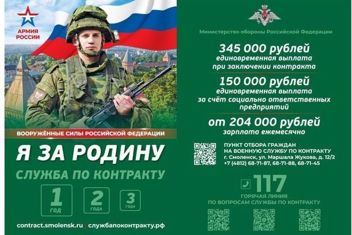 Поступающие на военную службу и заключающие контракт от 1 года получают единовременную выплату в размере от 400 тысяч рублей, из которых 205 тысяч – от Правительства области. Для родственников контрактников, добровольцев и мобилизованных смолян функционирует специальная платформа «Za Добро», внедрена социальная дисконтная карта «Zа Добро», с ними также работают социальные кураторы из Центра поддержки участников СВО и членов их семей (г. Смоленск, ул. Пригородная, 4, тел. 8 (4812) 22-98-00). В Смоленской области по поручению Президента России Владимира Путина также открыт региональный филиал Фонда «Защитники Отечества» (г. Смоленск, ул. Кловская, 13), специалисты которого занимаются поддержкой ветеранов СВО и членов их семей в части персонального сопровождения по всем возникающим вопросам.