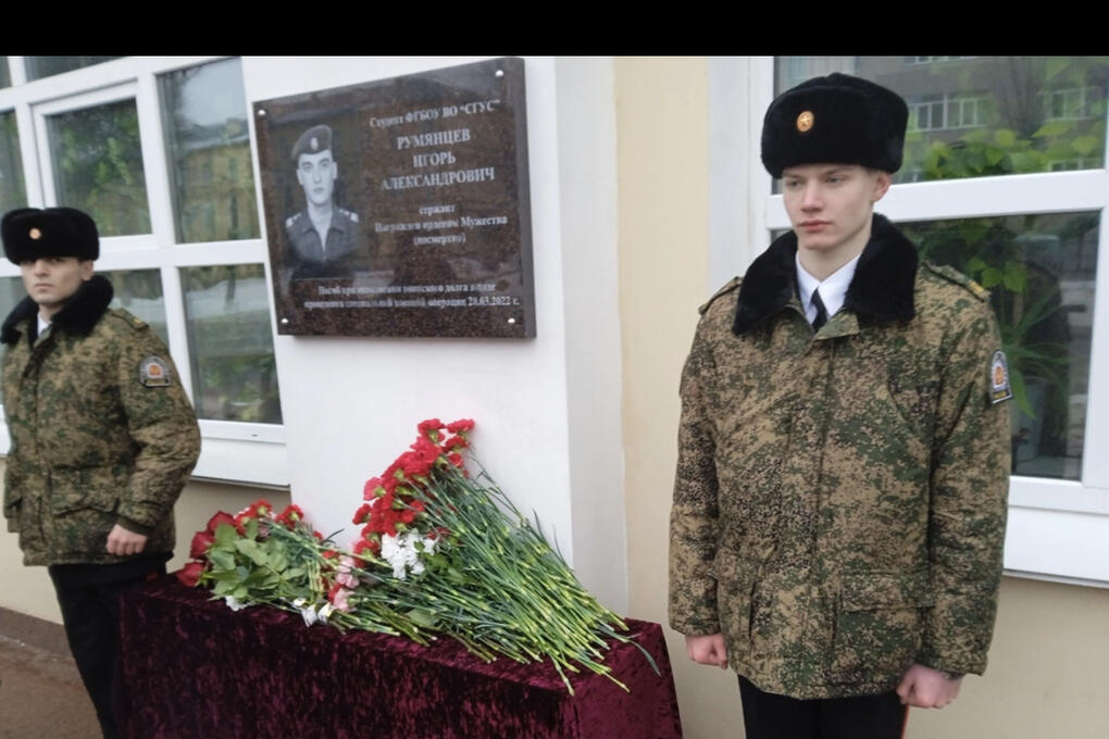 В СГУС торжественно открыли памятную мемориальную доску студенту академии Игорю Александровичу Румянцеву. Который погиб при исполнении воинского долга в ходе проведения СВО.