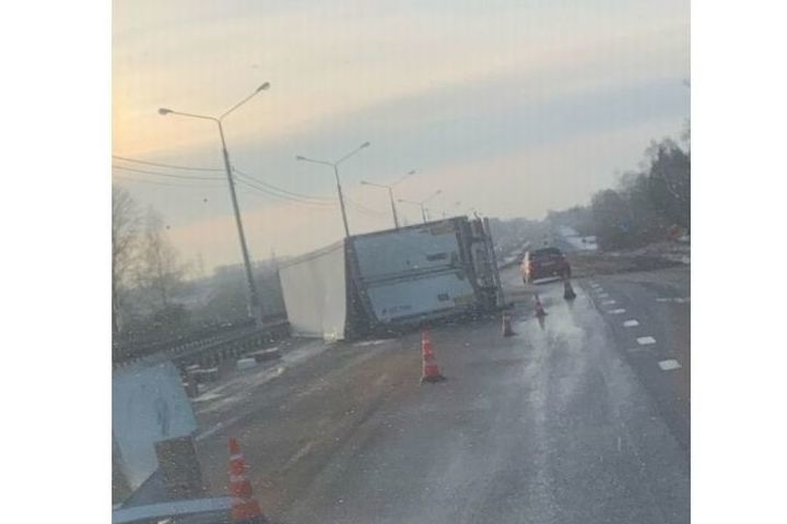 В половине первого ночи 28 февраля на Рославльской трассе в Смоленском районе в деревне Нагать произошло ДТП. Грузовой автомобиль наехал на сугроб и лег на бок.