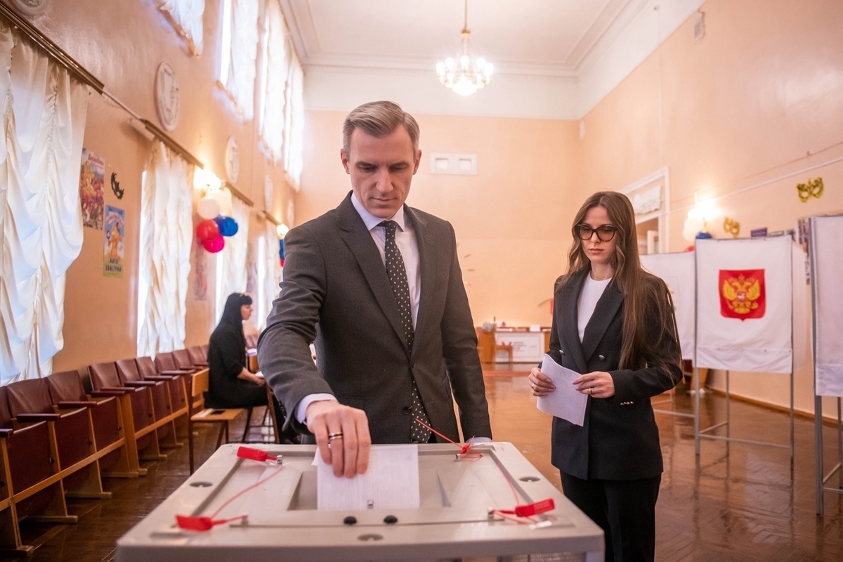 Губернатор Смоленской области Василий Анохин вместе с супругой проголосовали в первый час после открытия участков. На избирательном участке в гимназии им. Пржевальского.