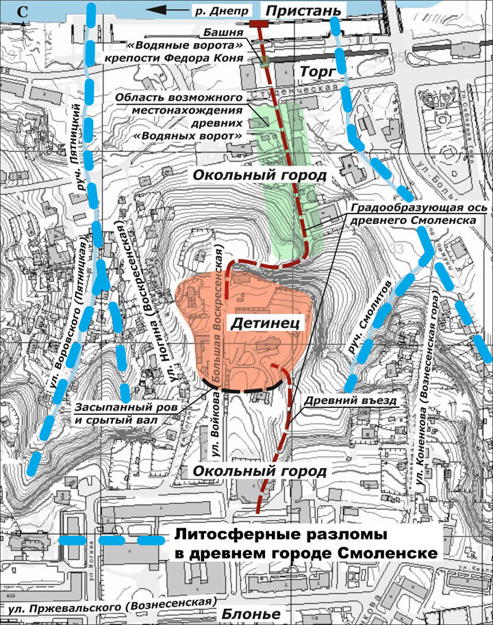 Литосферные динамические разломы в древнем Смоленске в зоне улиц Коненкова, Войкова, Ногина, Воровского