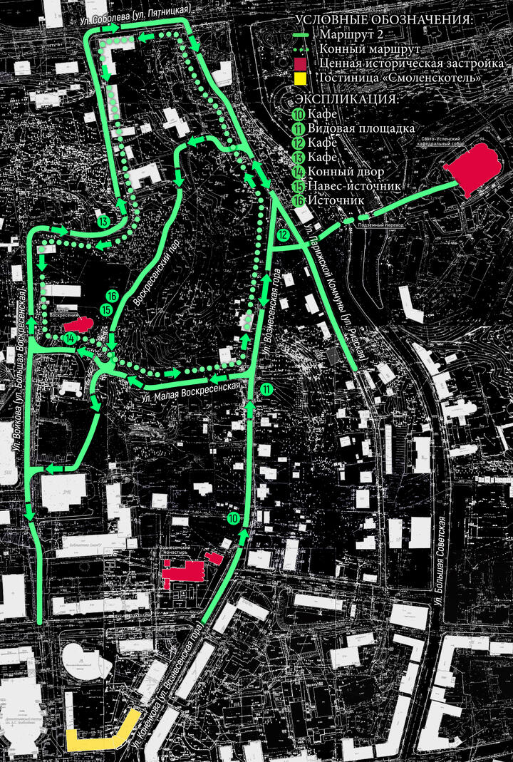 - О новых маршрутах ничего сказать не могу, но в городе достаточно краеведов экскурсоводов. Это их тема и они с этим творчески прекрасно справляются. Но Управление архитектуры администрации города сделала совместную работу в 2021 году с Смоленским Государственным Университетом на кафедре "Дизайн архитектурной среды". В итоге появился проект по туристическим маршрутам в центре Смоленска, который был отмечен дипломом в Москве на выставке, посвященной тематике "Градостроительство в МАРХИ" в Центральном доме Архитекторов в мае 2022 года.