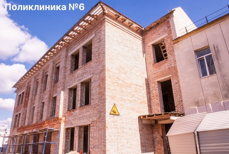В онкологическом диспансере происходит кладка внутренних стен из кирпича, устраивается вентиляционный фасад, инженерные системы, каркас для перегородок, слой пароизоляции на кровле и укладка утеплителя. Также идет остекление оконных проемов, оштукатуривание стен и стяжка полов.
