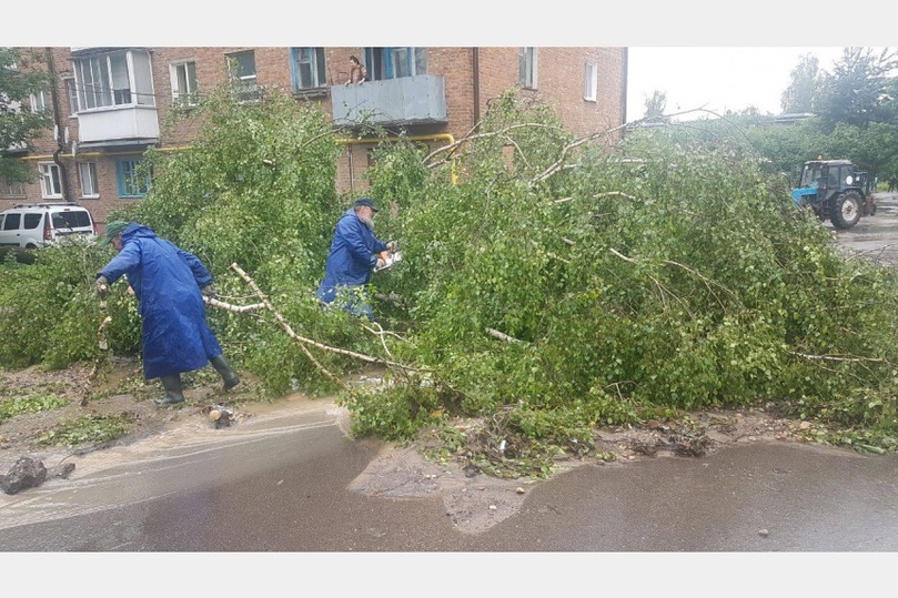 Уборкой поваленных деревьев занимается «Зеленстрой». В первую очередь освобождаются дороги и проезды, одновременно принимаются заявки от жителей на устранение неполадок по конкретным адресам. Работы будут проводиться весь день и завтра до полного устранения последствий. Заявки обрабатываются по очередности.