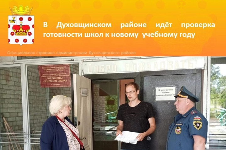 В Духовщинском районе проходит проверка готовности всех образовательных учреждений к новому учебному году. Создана специальная комиссия, которая проверяет, насколько школы и детские сады готовы к началу учебного года. В состав комиссии входят представители районной администрации, отдела образования и государственного пожарного надзора.