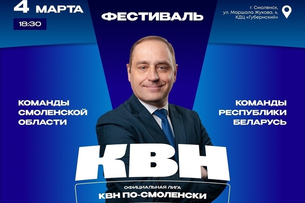 Фестиваль 2025 официальной лиги «КВН по-Смоленски» пройдет 4 марта, в 18:30 в КДЦ «Губернский».