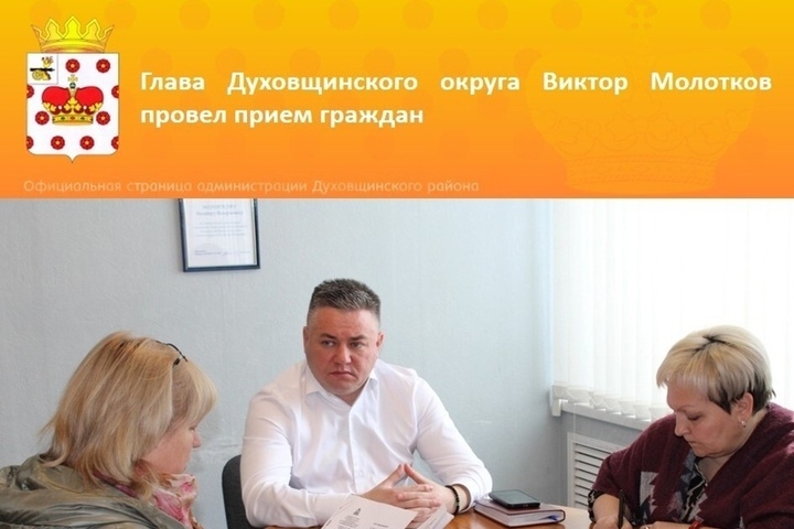 Глава Духовщинского округа Виктор Молотков провел прием граждан, в котором также участвовали его заместители и руководители структурных подразделений администрации.