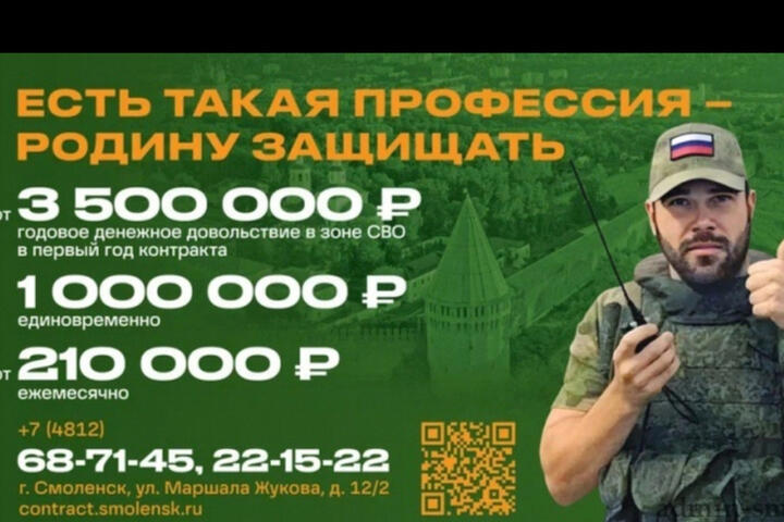 С 1 января 2025 года при заключении контракта на военную службу в Смоленской области предоставляется единоразовая выплата в размере 1,2 млн рублей. Кроме того, смоляне, которые оказывают содействие в подготовке кандидата к заключению контракта с Минобороны России, теперь могут получить 100 тысяч рублей. Граждане, заключившие контракт на военную службу, получают возможность списать долги по кредитам до 10 млн. рублей.
