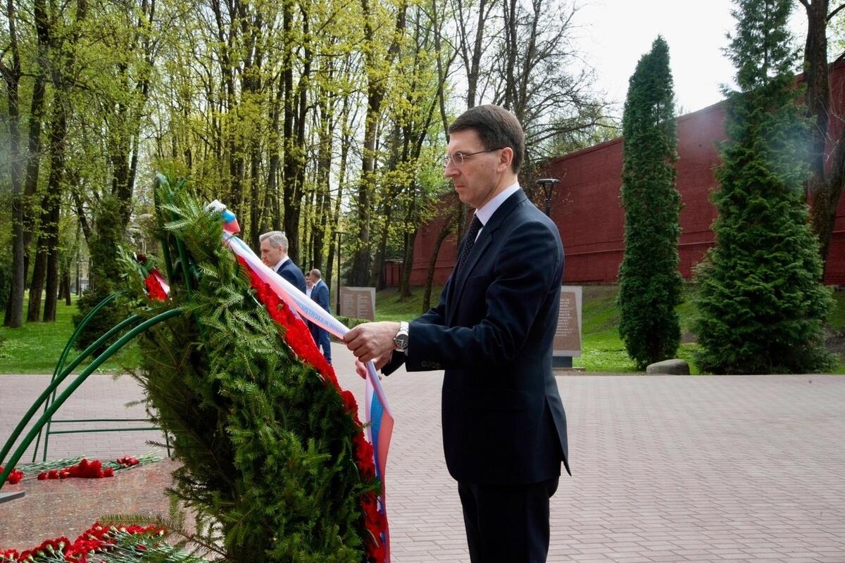 Губернатор Василий Анохин вместе с полномочным представителем Президента России в Центральном федеральном округе Игорем Щёголевым посетили Сквер Памяти Героев, где почтили память погибших во время Великой Отечественной войны.