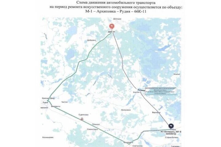 Большегрузам придется ехать через Рудню на Демидов, мост в Каспле имеет ограничение по массе.