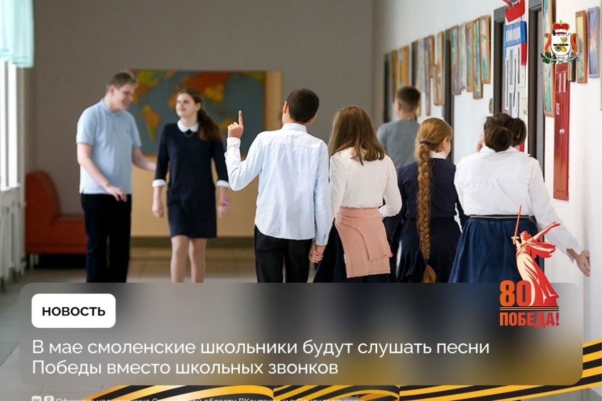 В мае в школах Смоленской области вместо обычных звонков будут звучать песни Победы, такие как "Катюша", "Смуглянка" и "Казаки в Берлине".