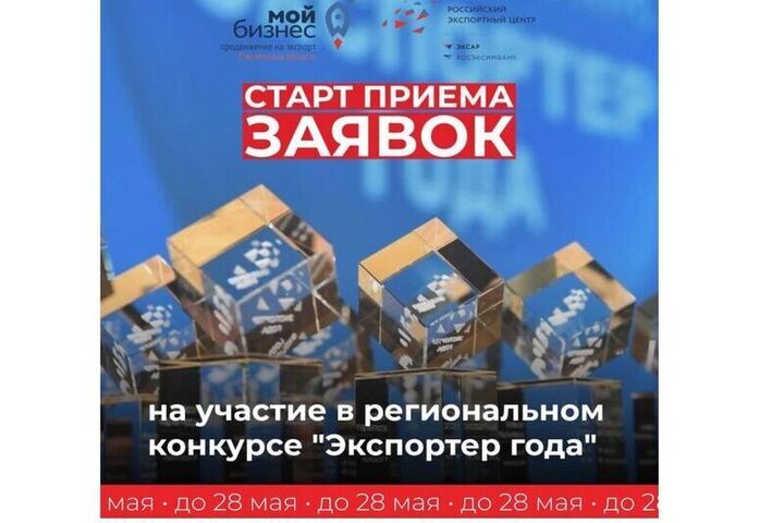 Заявки принимаются до 28 мая. После регистрации на сайте www.exportcenter.ru/awards/ можно заполнить анкету и стать участником не только регионального конкурса, но и всероссийской премии «Экспортер года». Не упустите шанс получить признание за свои успехи на внешних рынках!