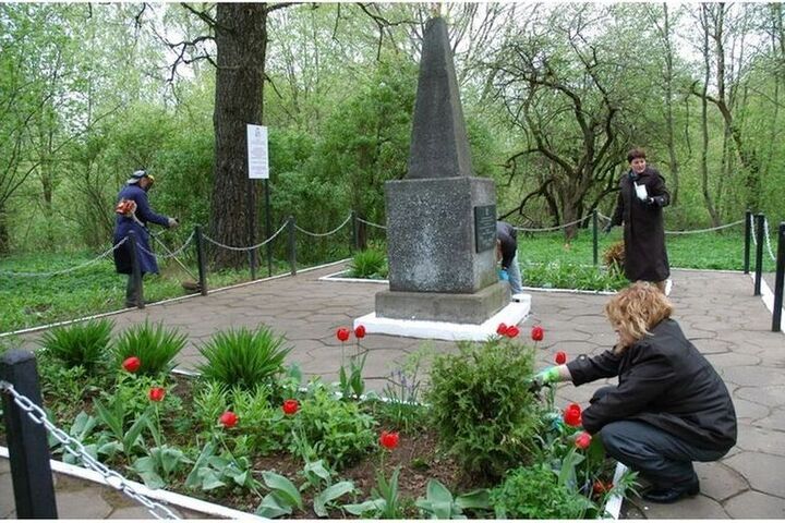 Участники акции навели порядок на прилегающей территории: убрали ветки и листву с площадки, дорожки и зоны вокруг памятника, пропололи клумбы, обработали и удобрили цветы и декоративные кустарники, а также покрасили бордюрные камни на захоронении.