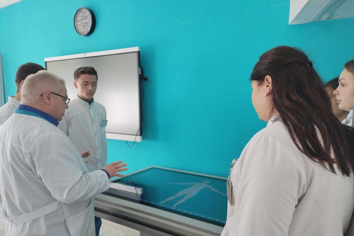 Также студенты ознакомились с работой автоматического дефибриллятора и анатомического стола.