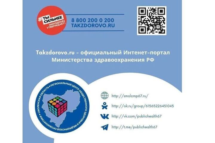 На территории региона также работают Центры здоровья на базе трех медицинских учреждений: Вяземской и Сафоновской ЦРБ, а также поликлиники №7 города Смоленска. Эти Центры созданы для того, чтобы помочь взрослым минимизировать факторы риска возникновения хронических неинфекционных заболеваний. В них оказывают всестороннюю поддержку смолянам с избыточной массой тела, а также курильщикам и тем, кто подвержен риску злоупотребления алкоголем или имеет несколько негативных факторов одновременно — низкую физическую активность, несбалансированное питание.