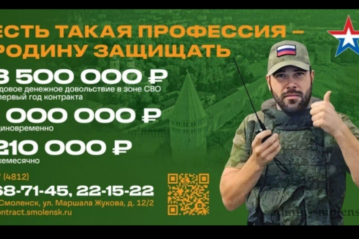 При заключении контракта на военную службу в Смоленской области предоставляется единоразовая выплата в размере 1,2 млн рублей. Кроме того, смоляне, которые оказывают содействие в подготовке кандидата к заключению контракта с Минобороны России, теперь могут получить 100 тысяч рублей. Граждане, заключившие контракт на военную службу, получают возможность списать долги по кредитам до 10 млн. рублей.