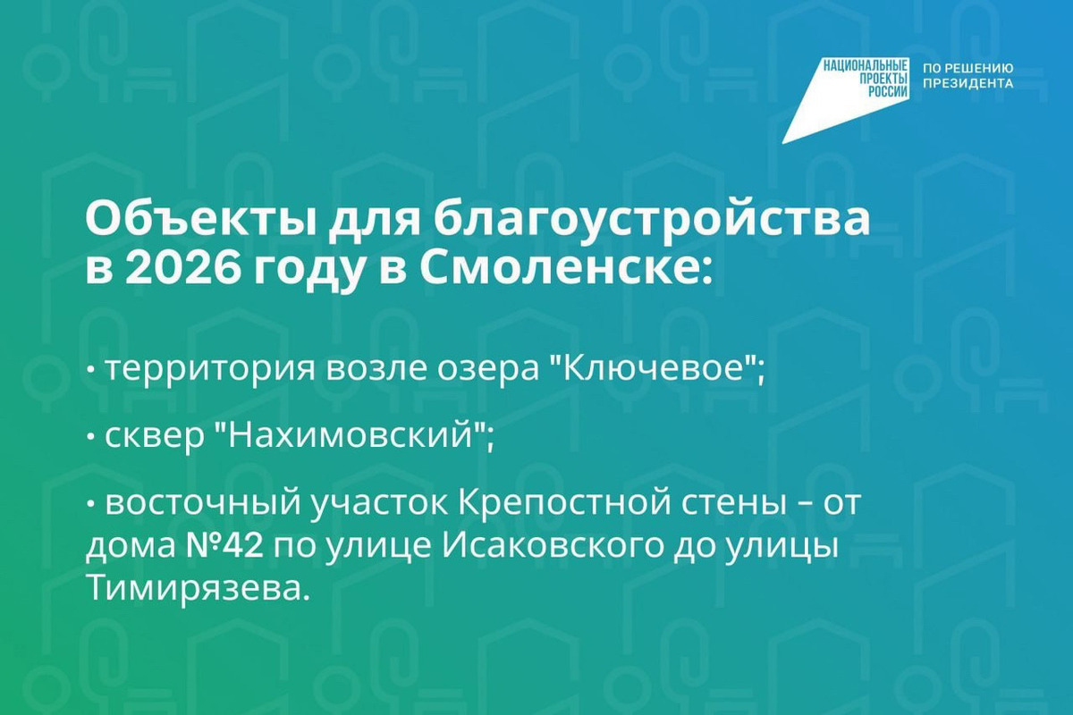 Благоустройство будет реализовано в рамках национального проекта «Инфраструктура для жизни», инициированного президентом РФ Владимиром Путиным. Ранее жители Смоленска проголосовали за этот проект в ходе онлайн-голосования «Формирование комфортной городской среды», отдав 5013 голосов.