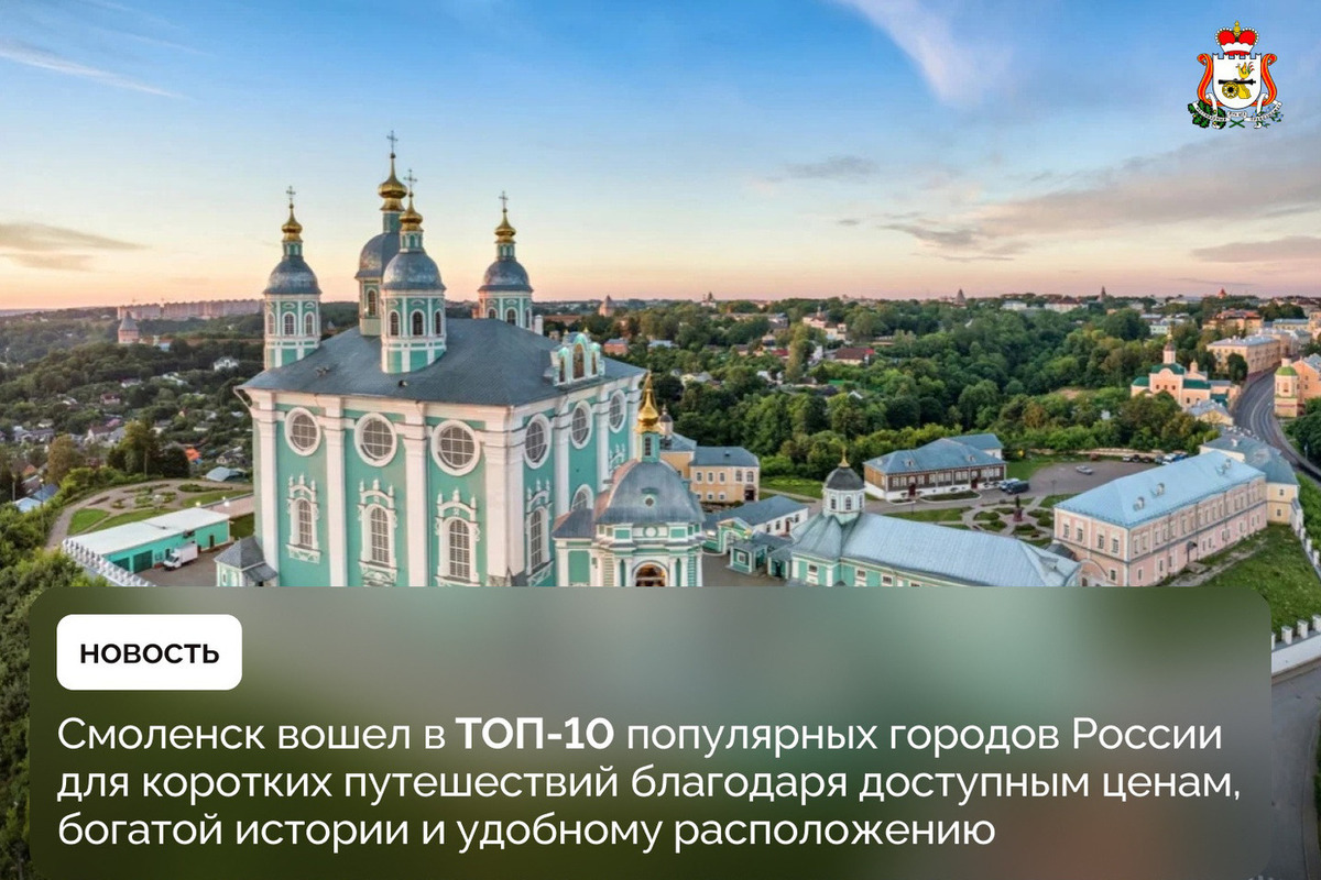 Смоленск вошел в десятку самых востребованных направлений для трехдневных путешествий в августе, согласно рейтингу сервиса бронирования Tvil.ru, заняв 9 место.