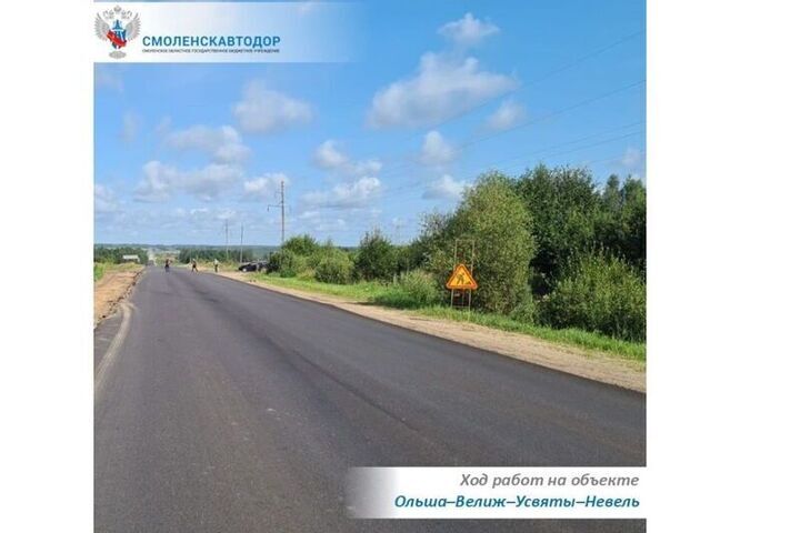 В Смоленской области в рамках национального проекта «Инфраструктура для жизни» продолжаются работы на автомобильной дороге Ольша–Велиж–Усвяты–Невель, входящей в опорную транспортную сеть региона. В Демидовском районе ведутся работы на участке с км 72+300 по км 74+800 протяжённостью 2,5 км.
